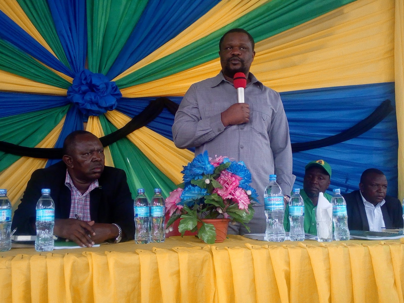 Mkuu wa mkoa wa Manyara ALEXANDER MYETI akifafanua jambo mbele ya watumishi wa Serikali ambao hawapo pichani akiwa Kiteto Manyara Tanzania..